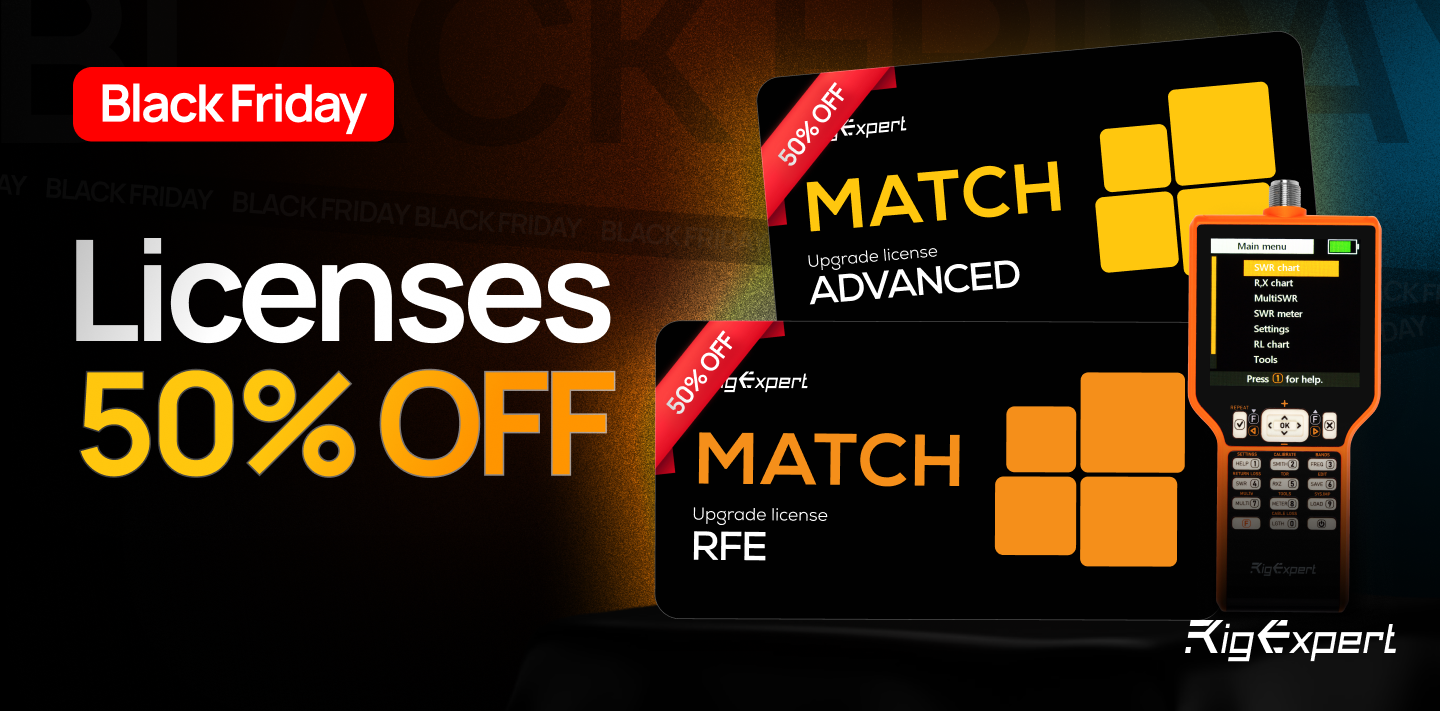 Od 27 listopada do 3 grudnia 205 kup analizator RigExpert MATCH (do 70 MHz) i otrzymaj 50% ZNIŻKI na licencje Advanced lub RFE!