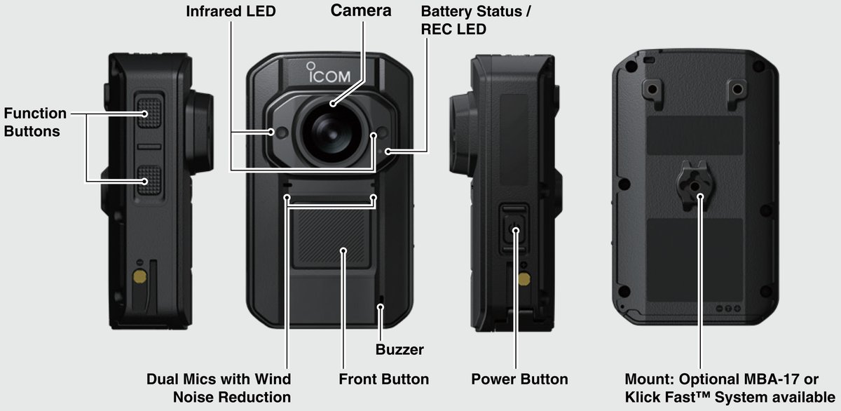 CAM-100B Kamera noszona, zaprojektowana z myślą o służbach, ochronie i pracy w terenie. Wraz z opcjonalnym oprogramowaniem RS-CAM100B masz podgląd na żywo z kamer CAM-100B, można zarządzać zasobami w czasie rzeczywistym, zapis osobny nakartę pamieci lub do wewnętrznej pamieci – będzie zależeć od modelu. – Jest to nowość pokazana na PMRExpo, a ponieważ Firma Icom od dawna produkuje urzadzenia profesjonalne dla służb, więc pojawienie się urządzenia typu CAM100B było kwestią czasu. Kamera ma zostać wydana w 2 rodzajach: TYLKO pamięć wewnętrzna i TYLKO karta SD – czas pokaże.