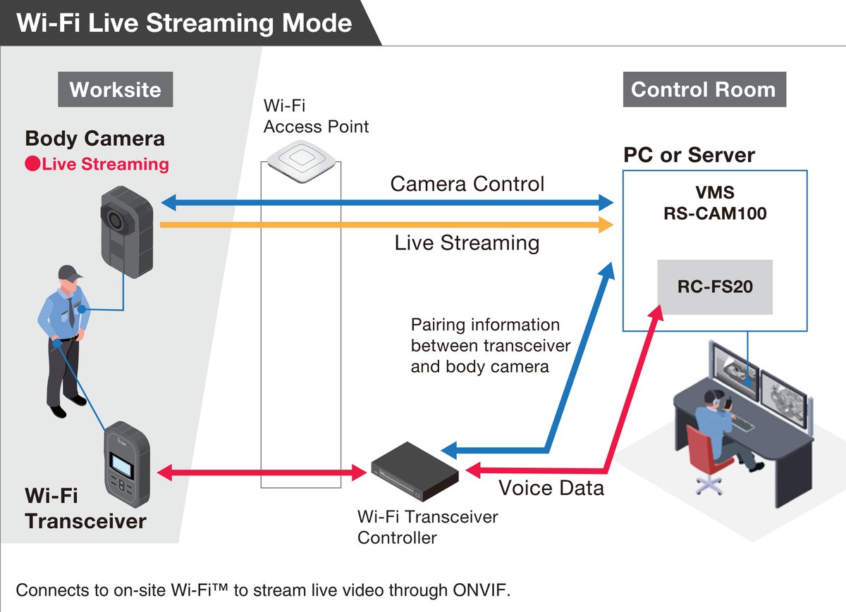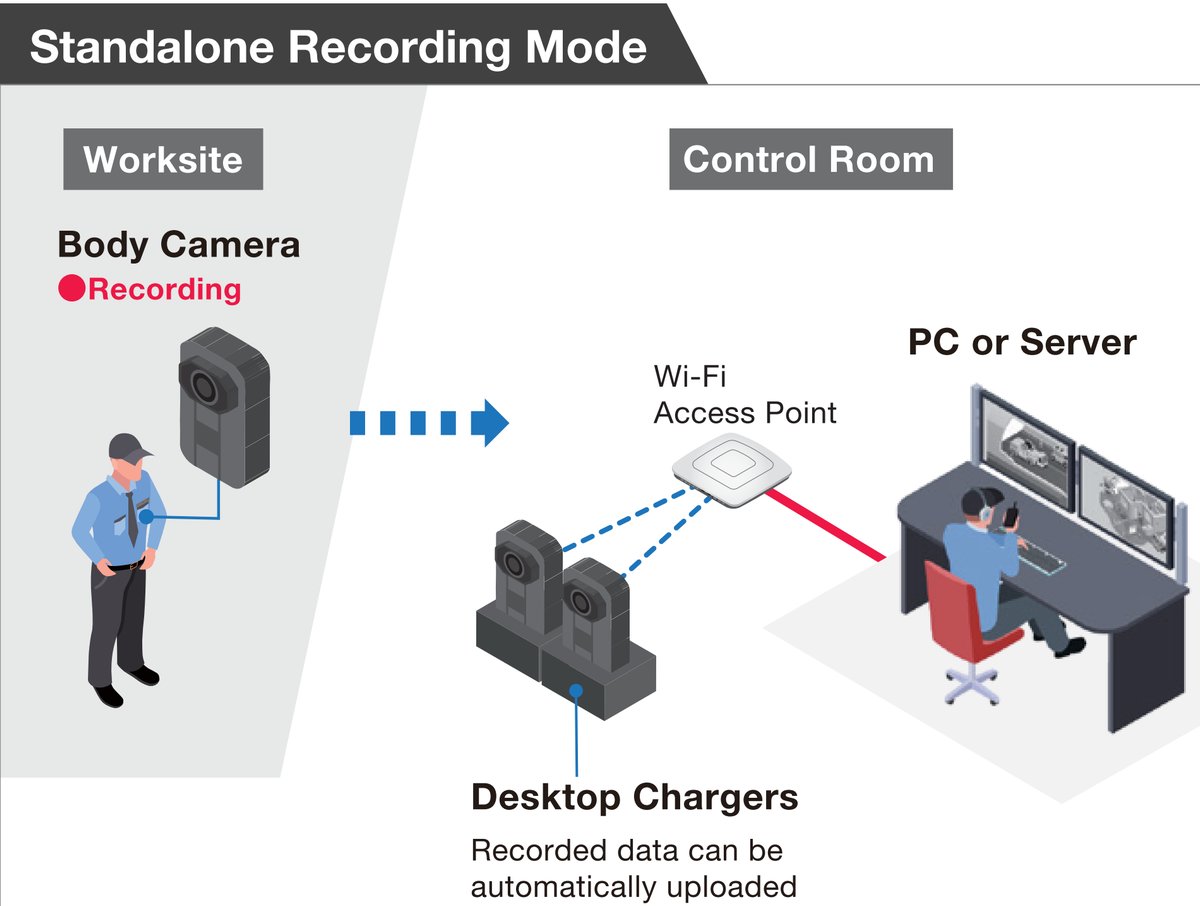 Kamera łączy mobilność (montaż na użytkowniku) z możliwością bieżącego przesyłania obrazu i dźwięku do centrum monitoringu, co zwiększa świadomość sytuacyjną podczas akcji.