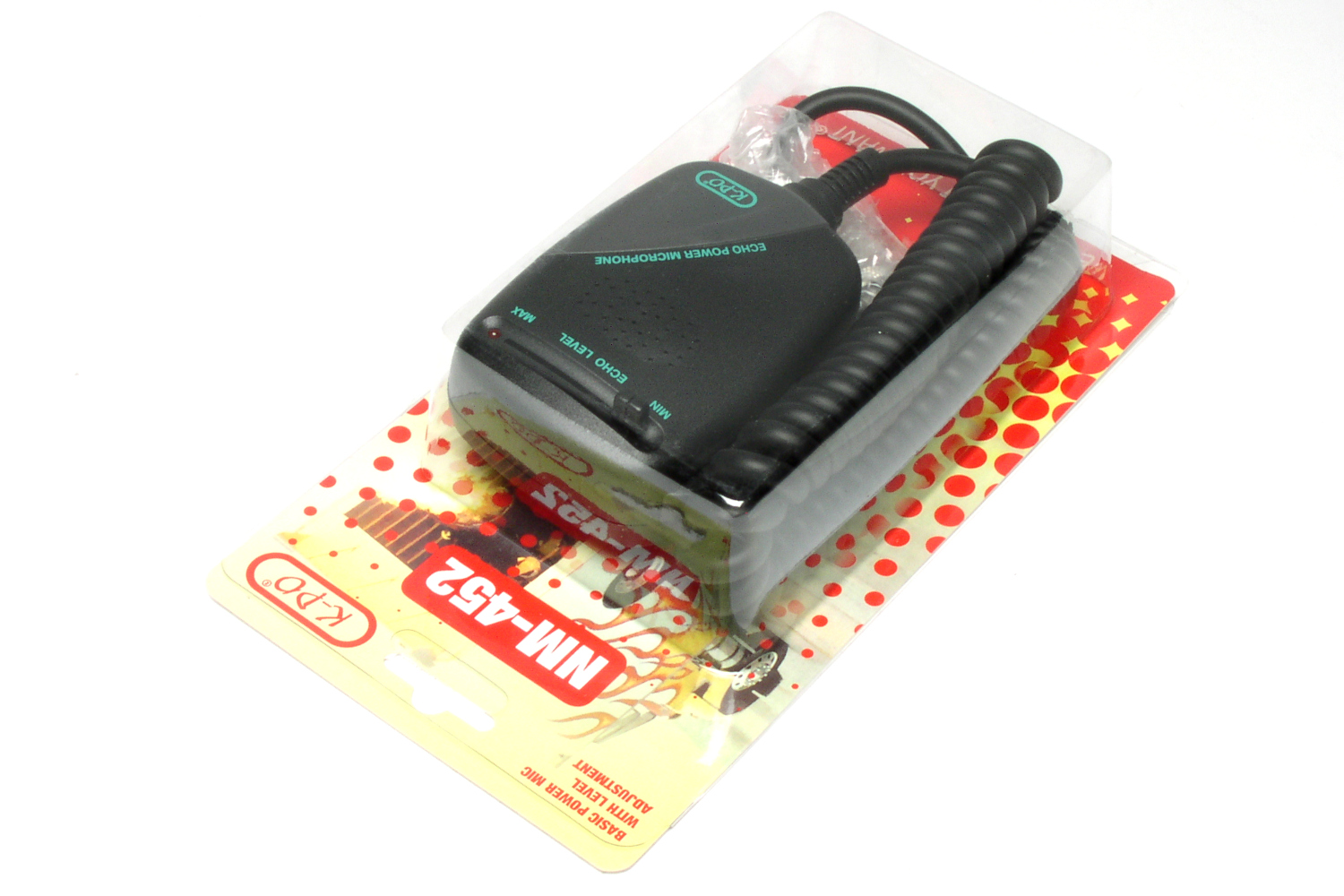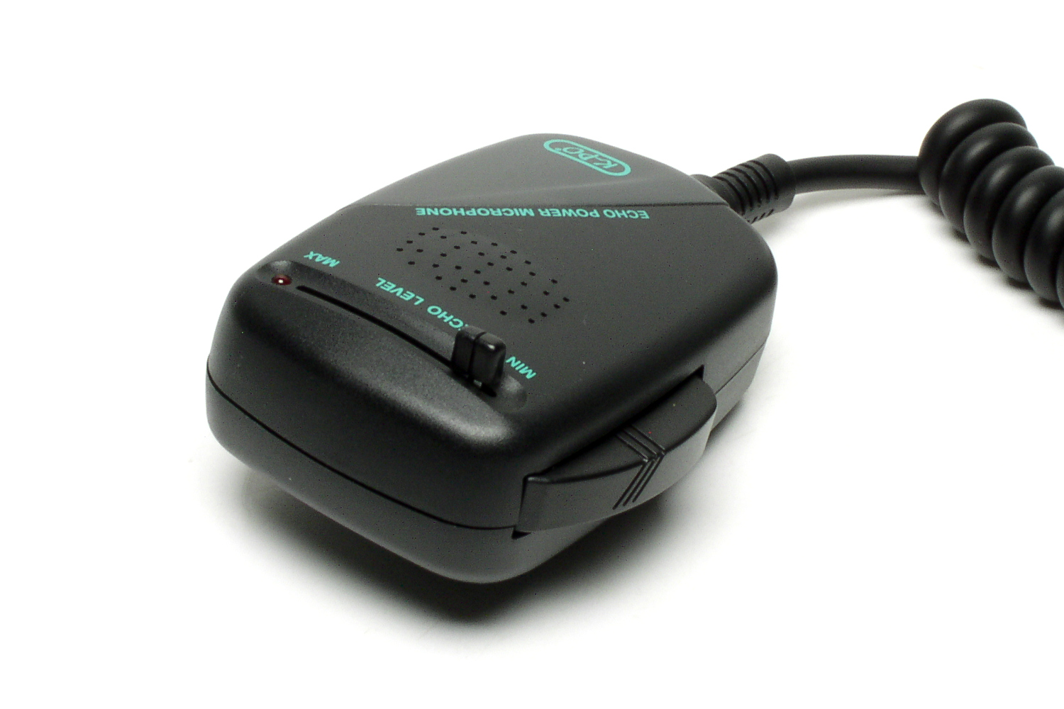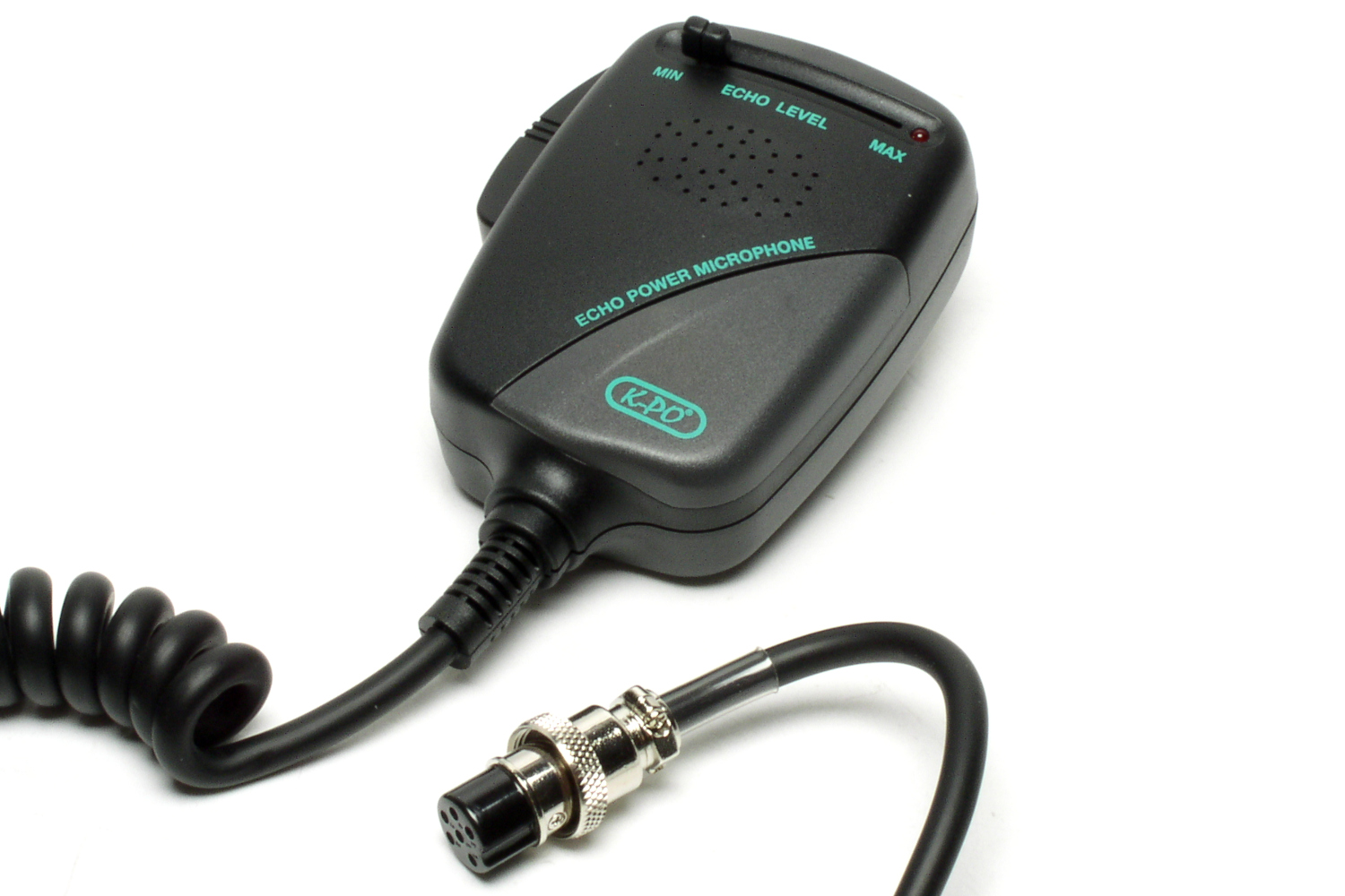 K-PONM452-P6 Mikrofon z dużym wzmocnieniem oraz echem. Echo regulowane jest za pomocą suwaka potencjometra z przudu mikrofonu. Regulacja wzmocnienia jest wewnątrz mikrofonu. Mikrofon z wtyczką 6 stykową do cb radia. Wymaga zasilania z baterii.