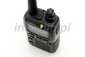 Zakresy częstotliwości RX: | 0.5 – 1.8 MHz (Pasmo BC) 1.8 – 30 MHz (Pasmo SW) 30 – 76 (59) MHz (Amatorskie 50 MHz) 76 -108 MHz (FM) 108-137 MHz (Pasmo Lotnicze) 137-174 MHz (Amatorskie 144 MHz) 174-222 MHz (VHF TV) 222-420 MHz (ACT1) 420-470 MHz (Amatorskie 430 MHz) 470-800 MHz (UHF TV) 800-999 MHz (ACT2; pasmo GSM zablokowane) | Zakresy częstotliwości TX: | 144-146 MHz 430-440 MHz | Kroki strojenia: | 5, 9, 10, 12.5, 15, 20, 25, 50, 100 kHz | Regulacja shiftu przemiennika: | +- 600 kHz (144 kHz) +- 1.6,5.0,7.6 MHz (430 MHz) | Rodzaje modulacji: | FM (F2, F3) | Impedancja anteny: | 50 Ohm | Gniazdo antenowe: | SMA | Napięcie zasilania: | 3.7 V, minus na masie 3.2 – 7.0 V, minus na masie (zew. gn. jack) 5.5 – 7.0 V, minus na masie (zew. gn. jack podczas ładowania) | Pobór prądu: | 150 mA (Rx) 58 mA (Standby, Saver Off) 20 mA (Standby, Saver On) 200 µA (Auto Power Off) 1.3 A (1.5 W TX , 144 MHz) 3.7 V DC 1.8 A (3 W TX , 144 MHz) 6.0 V DC 1.2 A (1 W TX , 430 MHz) 3.7 V DC 1.5 A (2 W TX , 430 MHz) 6.0 V DC | Zakres temperatur pracy: | (-20 do +60 st. C) | Wymiary obudowy: | 47mm /81mm /23mm | Masa: | 132g |