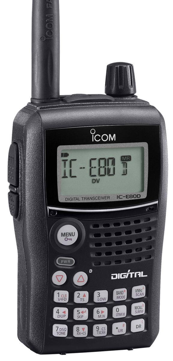 IC-E80D może nadawać i odbierać w cyfrowym formacie D-STAR oraz jednocześnie dokonywać transmisji danych szybkością ok. 950bps. Tryb analogowy FM jest również dostępny.