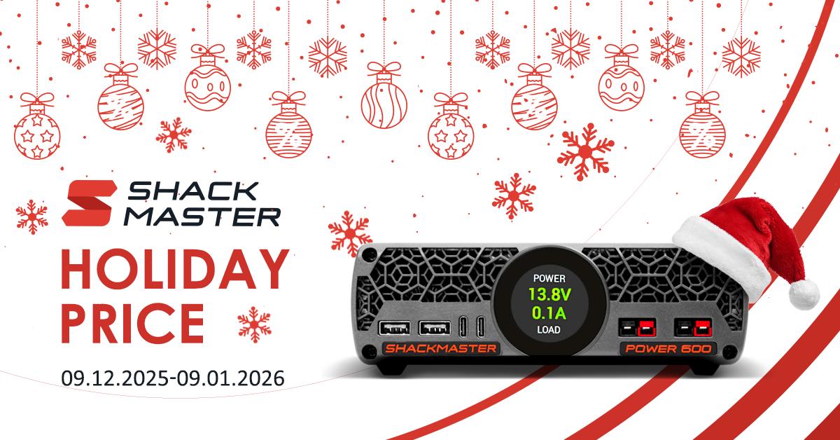 Rigexpert POWER 600 Shack master to niewielki zasilacz do urządzeń zasilanych 12V – 15V o dużej wydajności prądowej. Producent zwraca uwagę na niskie zakłócenia własne, więc przeznaczony jest dla urządzeń radiokomunikacyjnych, zwłaszcza KF. Wyposażony w złącze USB-C do przesyłania danych pomiarowych prądu i napięcia. Mimo że zasilacz jest impulsowy i posiada aż dwa wentylatory, po włączeniu panuje kompletna cisza, aktywne chłodzenie załączy się gdy zasilacz się nagrzeje podczas obciążenia.