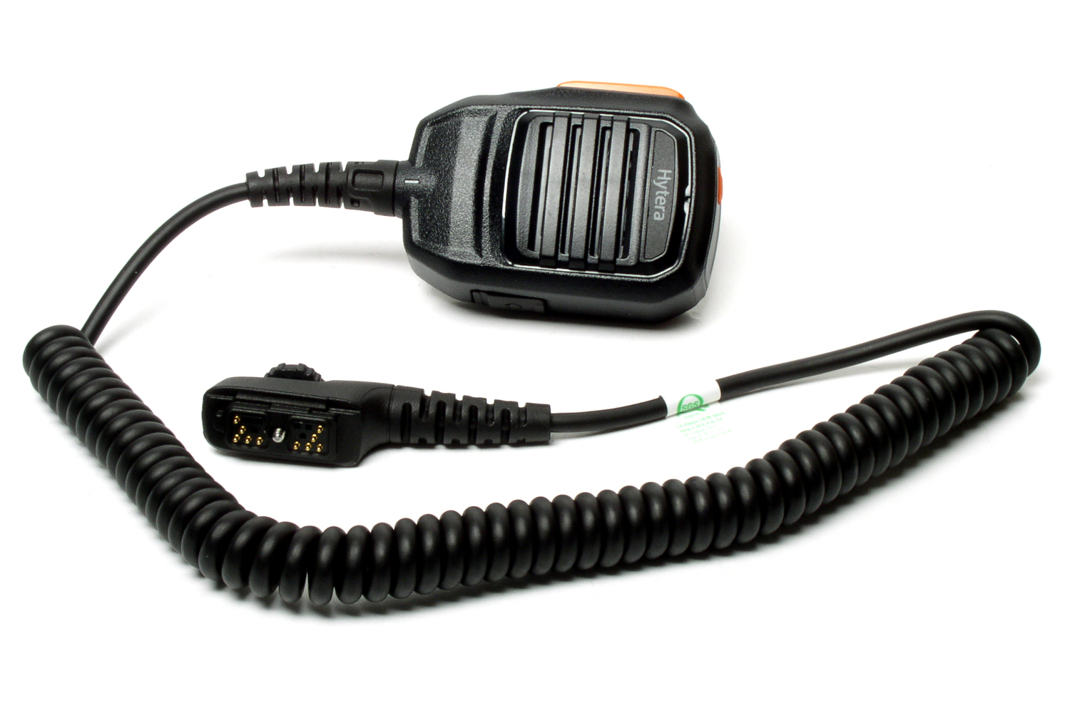 Mikrofono-głośnik z dodatkowym gniazdem 3,5mm na słuchawki. Mikrofon pyło i wodoszczelny IP67, zamontowany przycisk alarmowy. Mikrofon podłączany przez szerokie złącze akcesoriów (wielopinowe), w radiotelefonie.